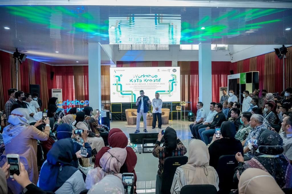 Pj Bupati Aceh Besar Muhammad Iswanto menyampaikan apresiasi dan terima kasih atas kehadiran Menparekraf Sandiaga Uno yang memberikan motivasi sekaligus pelatihan yang sangat dibutuhkan para pelaku ekonomi kreatif di Aceh Besar.
